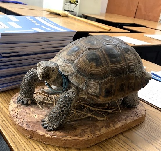 Tis in fact a tortoise if you could not tell. His name is Moe. He is a taxidermy tortoise to be exact.