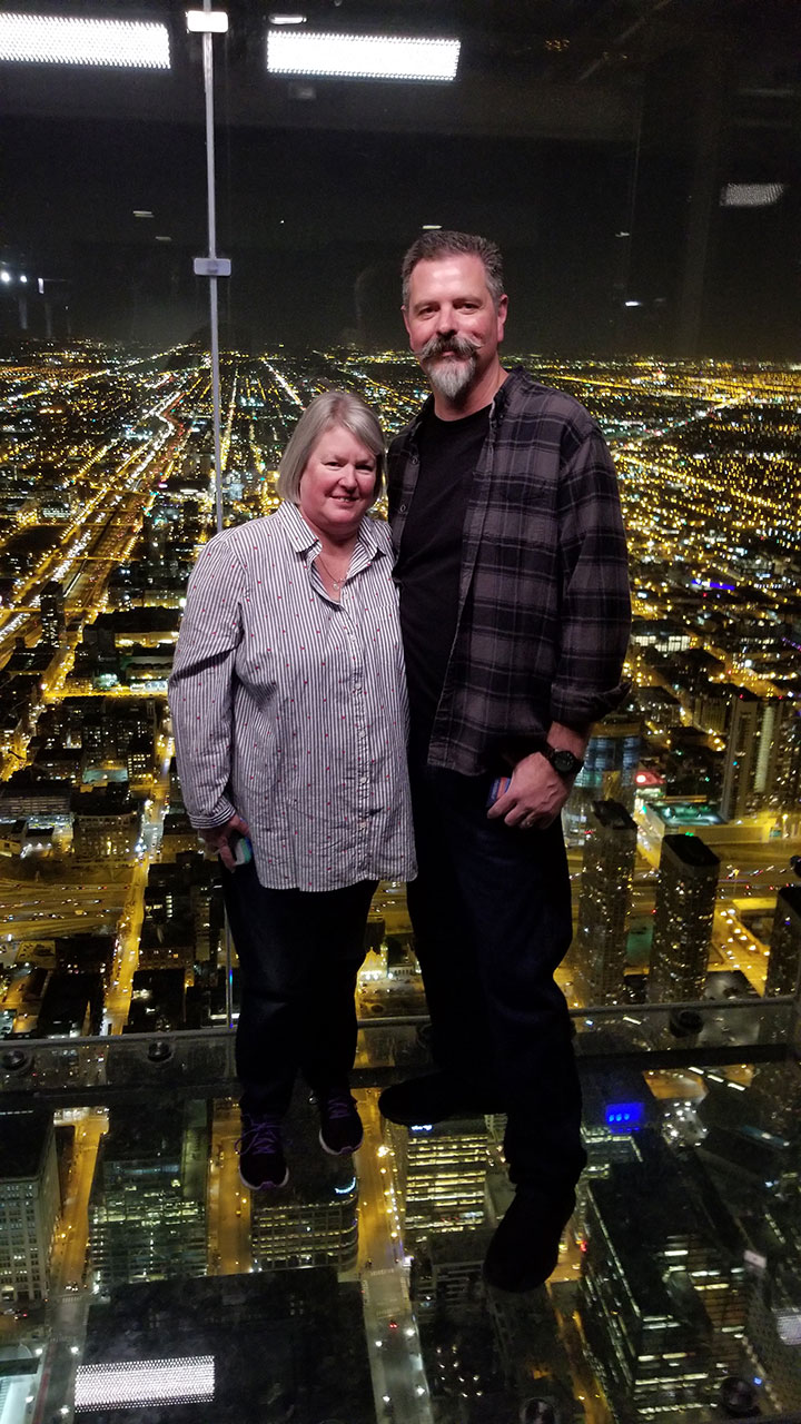 Beth and I went up into what used to be the Sears tower and walked out into the glass bottom viewing platform. She does not like heights, but it was her idea!